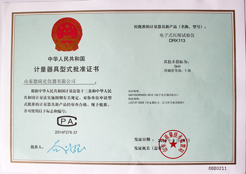 參加審核的型式批準的樣機必須具備以下資料:(1)樣機外形照片;(2)產(chǎn)品標準(含檢驗方法);(3)總裝圖、電路圖和主要零部件圖;(4)使用說(shuō)明書(shū);(5)制造單位或技術(shù)機構所做的試驗報告等,德瑞克電子拉力試驗機、電子式抗壓試驗機、電子式壓縮試驗儀等均滿(mǎn)足上述條件,并通過(guò)現場(chǎng)嚴格的零點(diǎn)誤差,線(xiàn)性誤差、力值誤差、顛簸實(shí)驗等嚴格考核實(shí)驗,各項技術(shù)指標均達到國家1級試驗機的標準。