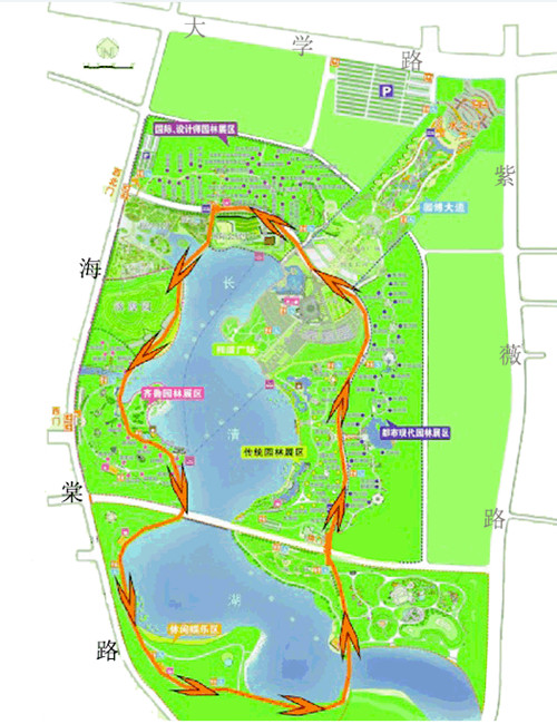 本次大賽舉辦地濟南國際園博園是目前國內陸地面積最大的園博園。園內展園總數超過(guò)一百個(gè),包括17個(gè)省內城市、45個(gè)其他城市、我國港澳臺地區以及21個(gè)國外城市的主題園區。大賽分為專(zhuān)業(yè)組和業(yè)余組,專(zhuān)業(yè)組男、女各取前十名進(jìn)行獎勵,業(yè)余組男、女各取前20名進(jìn)行獎勵。參賽者們將在園博園環(huán)繞長(cháng)清湖奔跑,專(zhuān)業(yè)組15公里,業(yè)余組7.5公里。