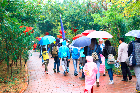 天公作美,一場(chǎng)淅淅瀝瀝的秋雨應景而落,沒(méi)有秋日斜陽(yáng),雨中的山川倒顯得更加通透,清潤,更加秋意盎然。德瑞克人雨中穿行,留下了一路歡聲笑語(yǔ)。紅葉、山川、飛瀑、古塔,和如織的游人一起組合成了一幅唯美的秋日油畫(huà),伙伴們用微笑定格,和美景和這美好的時(shí)光一起留進(jìn)了影象。
